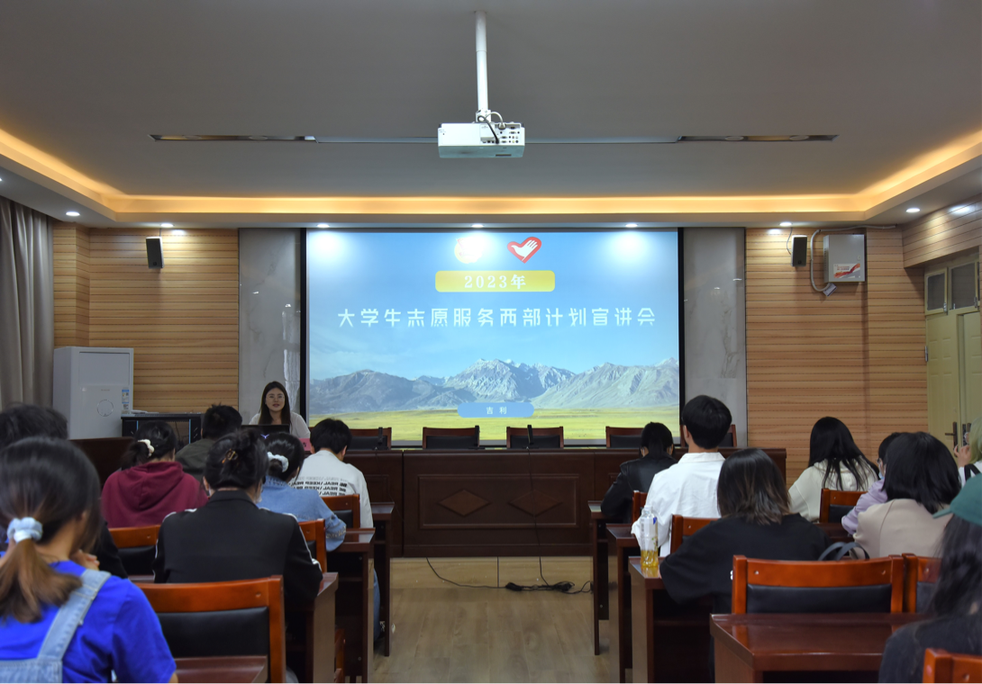 吉利围绕什么是西部计划、2023年西部计划实施规模、参加“西部计划”主要从事的服务内容、政策支持和资金保障四个方面为同学们做了宣讲,并结合自身经历与学生经历,对参加西部计划在升学、考公、就业等方面优势、人才补贴及国家政策支持进行详细说明。随后,吉利老师着重强调了西部计划进度安排和注册报名相关注意事项,鼓励同学们积极报名参加。