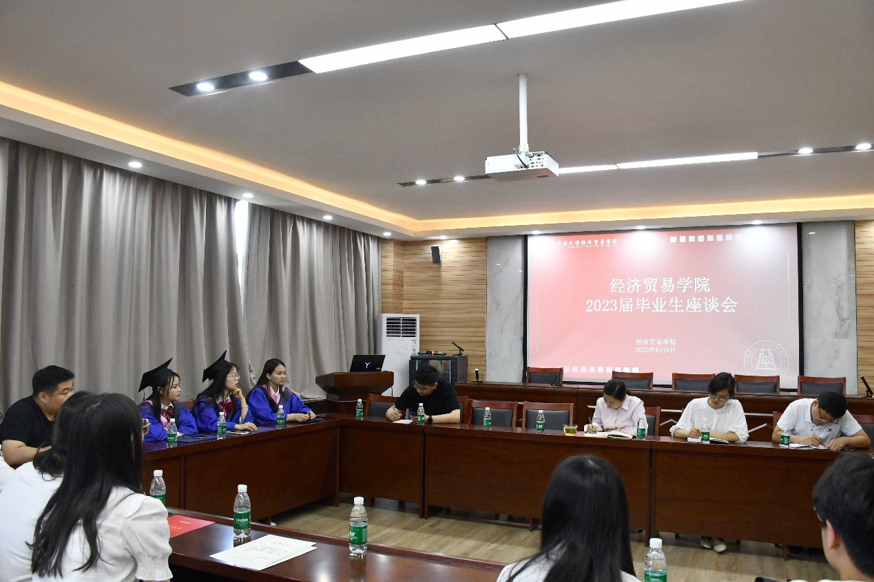 在3605会议室召开2023届毕业生座谈会。学院党委副书记岳鹏珍、学工办主任李振宇、2019级毕业班辅导员时燕明、研究生辅导员张福勇及2023届毕业生代表参加。会议由岳鹏珍主持。
