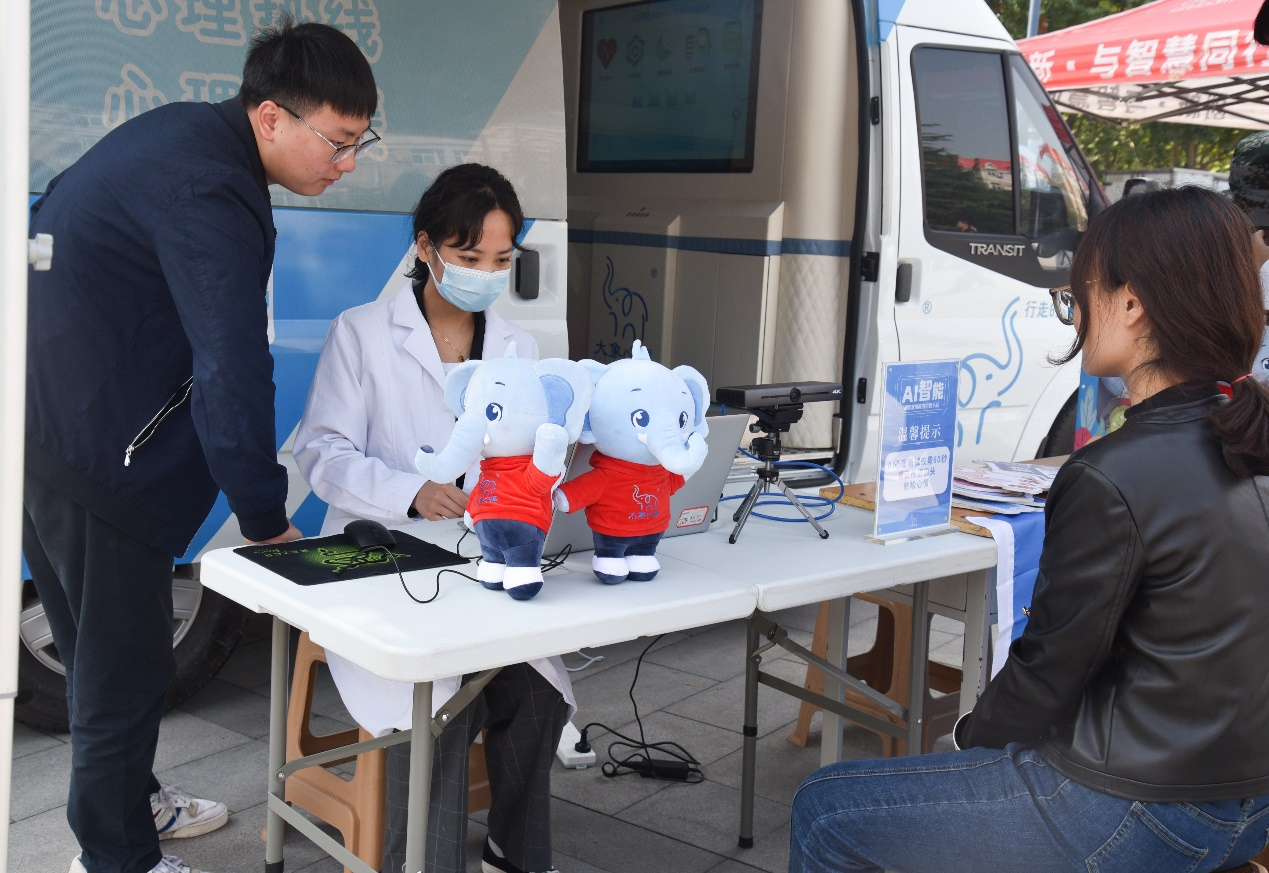 联合全国首批心理健康科普教育基地河南大象心理健康服务中心在钟楼广场开展大学生心理体检活动。校党委学工部副部长薛中海、爱影视