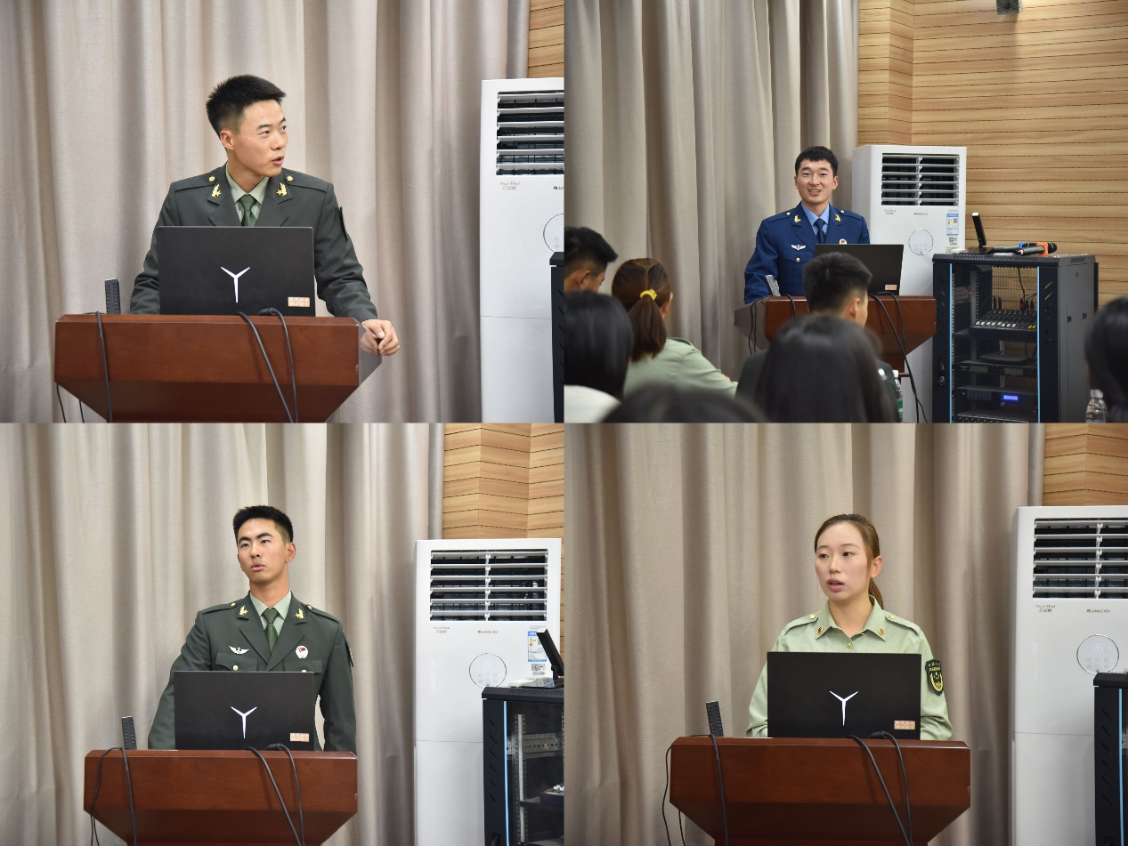 校征兵宣讲团的成员巩旺龙、周军顺、王斐帆分别从新兵连、军旅生涯、退伍生活三个方面向大家分享了自己充实精彩的参军经历。军旅生活既有艰苦的训练,又有真挚的战友情,并且能够学习诸多技术本领,能让人生实现一次巨大的蜕变。现场气氛轻松活跃,同学们进一步感受到军旅生活的魅力。接着,刘钰楷从基本条件、服役期间政策和退伍政策三个方面详细介绍了征兵政策,让大家对参军政策有了更加全面清晰的认识。随后,校征兵宣讲团的成员针对在场同学的各种疑问进行答复,进一步激发了同学们强烈的责任意识,增强了报效国家的坚定决心。