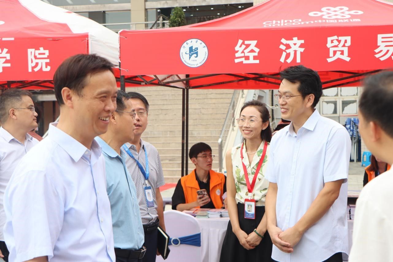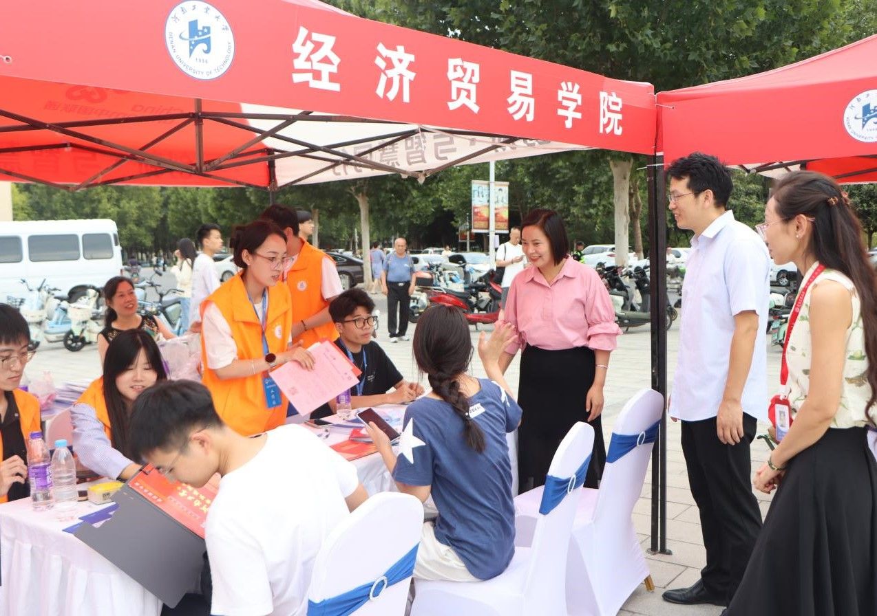 迎新伊始,校党委副书记周相寅、黄泽峰等人一行来到报到现场询问学院报到情况,为学院安全、稳定完成迎新工作作出了重要指示。学院副院长程晓林和党委副书记岳鹏珍与报到新生亲切交流,欢迎他们加入工大爱影视