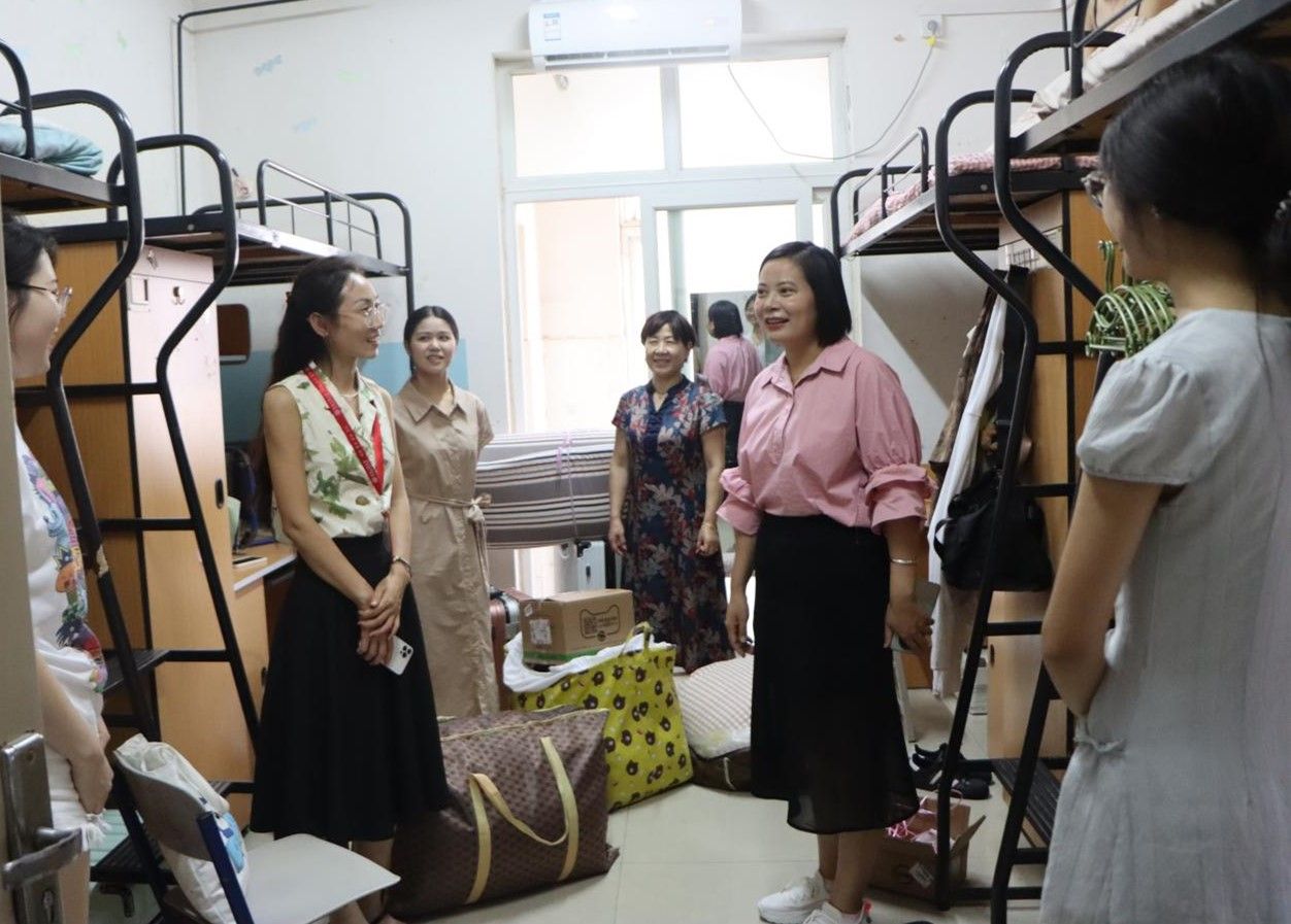 随后,岳鹏珍和程晓林分别带领新生辅导员和学生干部到新生宿舍慰问走访。他们询问新生生活安顿情况,解决实际困难和所急所需,全力为新生的学习生活保驾护航,并叮嘱学生注意宿舍用电安全、防范电信诈骗、做好学业规划,充实校园生活。