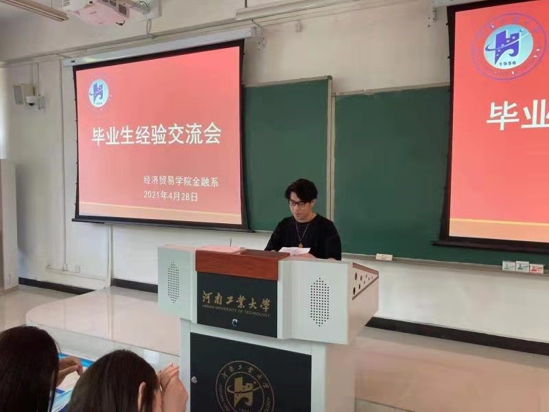 邀请优秀校友一德期货郑州营业部总经理李连胜和2021届优秀毕业生代表与2018级金融学专业学生开展考研就业经验交流。金融学系主任奚宾出席并主持会议。