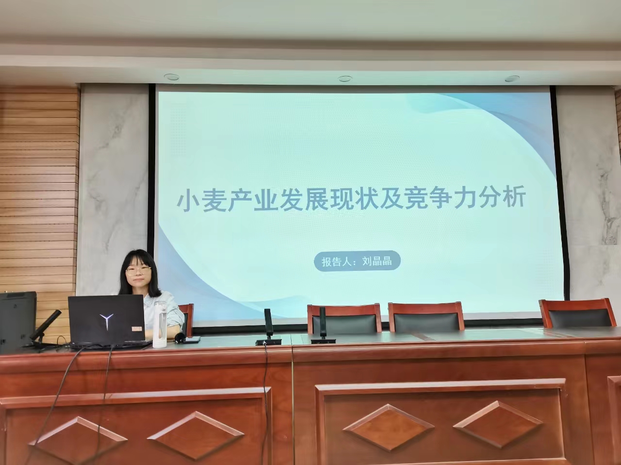 刘晶晶首先阐述了目前我国小麦的基本概况、生产现状、消费及进出口贸易;随后重点从小麦生产总成本、生产收益、市场价格等因素以及政策支持强度等方面全面分析中国小麦产业在国际市场上的竞争力,及小麦加工市场与发展策略。同时,她结合自己的经历,与同学们分享了自己在研究中的心得体会,并对有志从事农业研究的同学提出殷切希望。