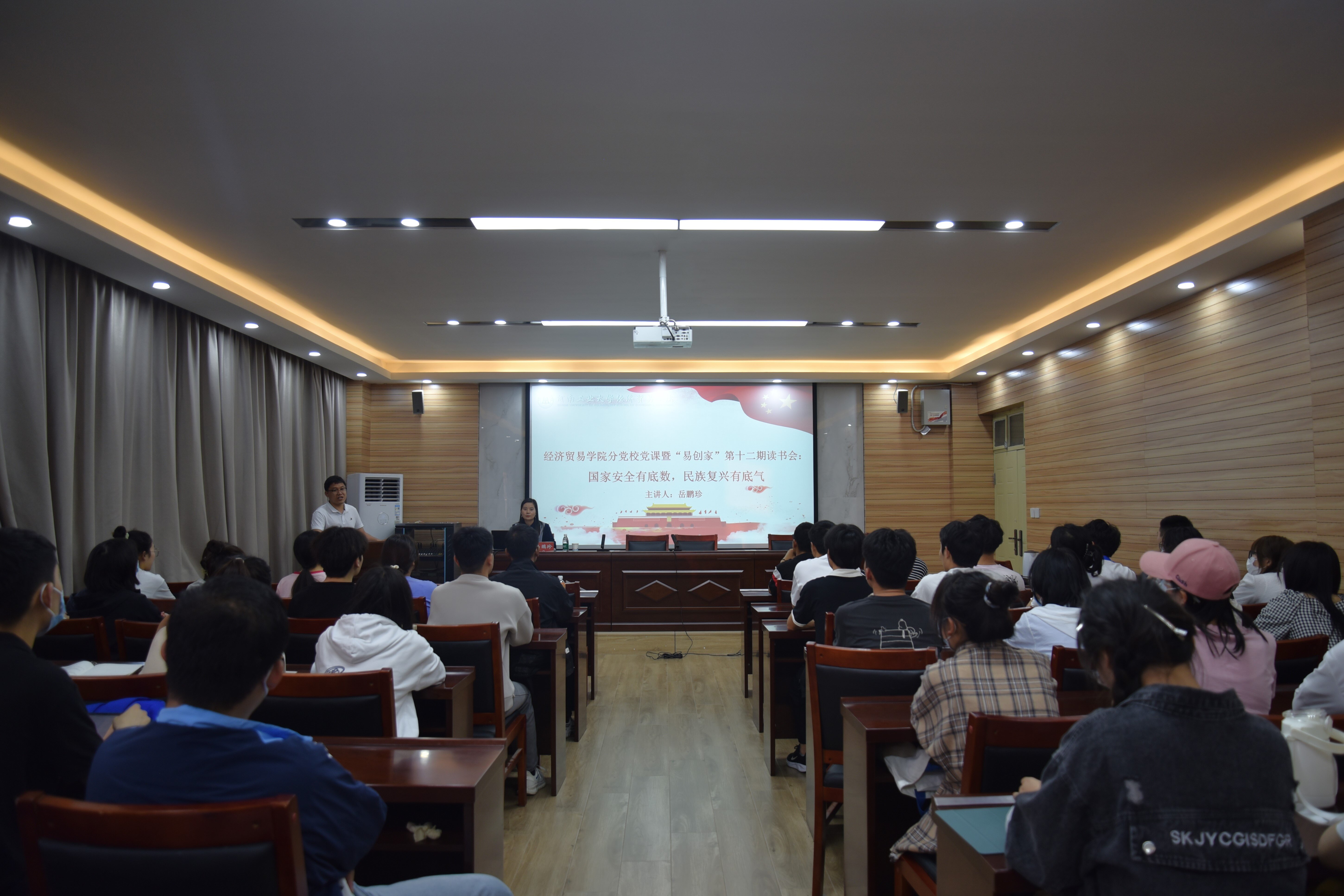 于3605会议室召开分党校党课暨“易创家”第十二期读书会,院党委副书记岳鹏珍为本期入党积极分子们讲授了主题为“国家安全有底数,民族复兴有底气”的一期党课,会议由研究生辅导员张福勇主持。