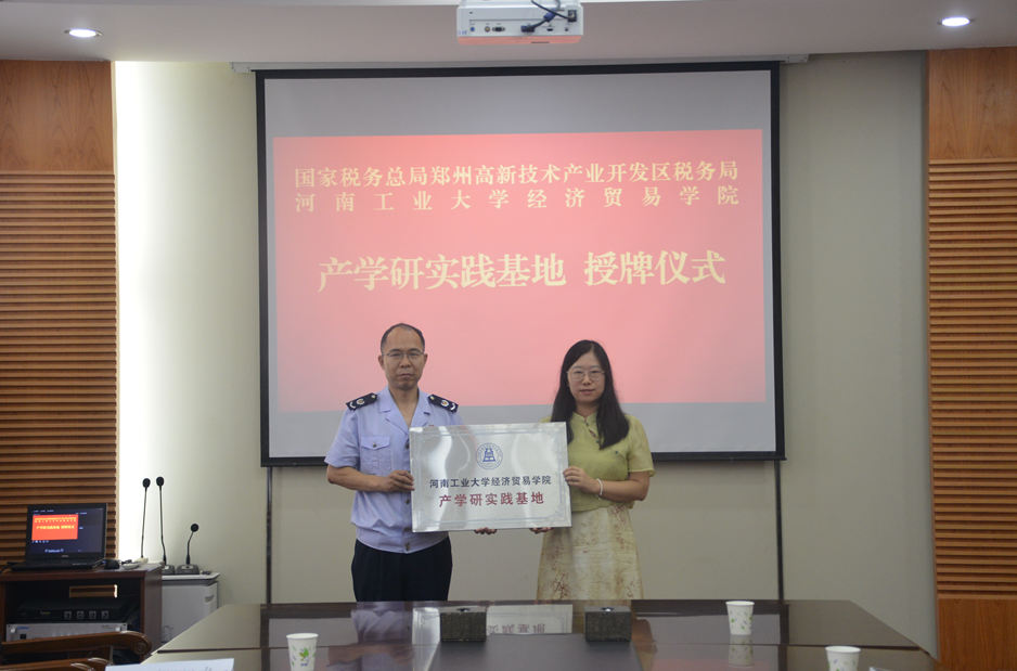 与国家税务总局郑州高新技术产业开发区税务局(以下简称高新区税务局)在高新区税务局金梭路办公区举行产学研实践基地授牌仪式暨实习生见面会。高新区税务局副局长于德亮、组织人事股科长高新平,爱影视