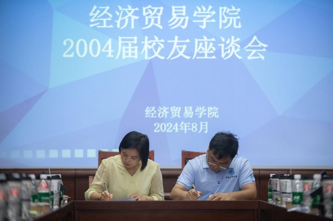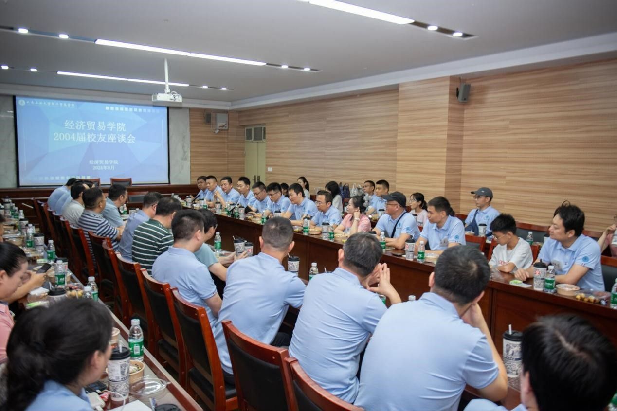 2004届校友开展返校活动,上午在3605会议室举行校友座谈会,经贸学子欢聚一堂,共同追忆青葱岁月,展望美好未来。校党委学工部部长王迪、校友会副秘书长赵强、学院党委书记李刚、院长李文启、河南产业发展研究院执行主任任新平、金融学教师翟书斌、校友代表参加此次座谈会,座谈会由院党委副书记岳鹏珍主持。