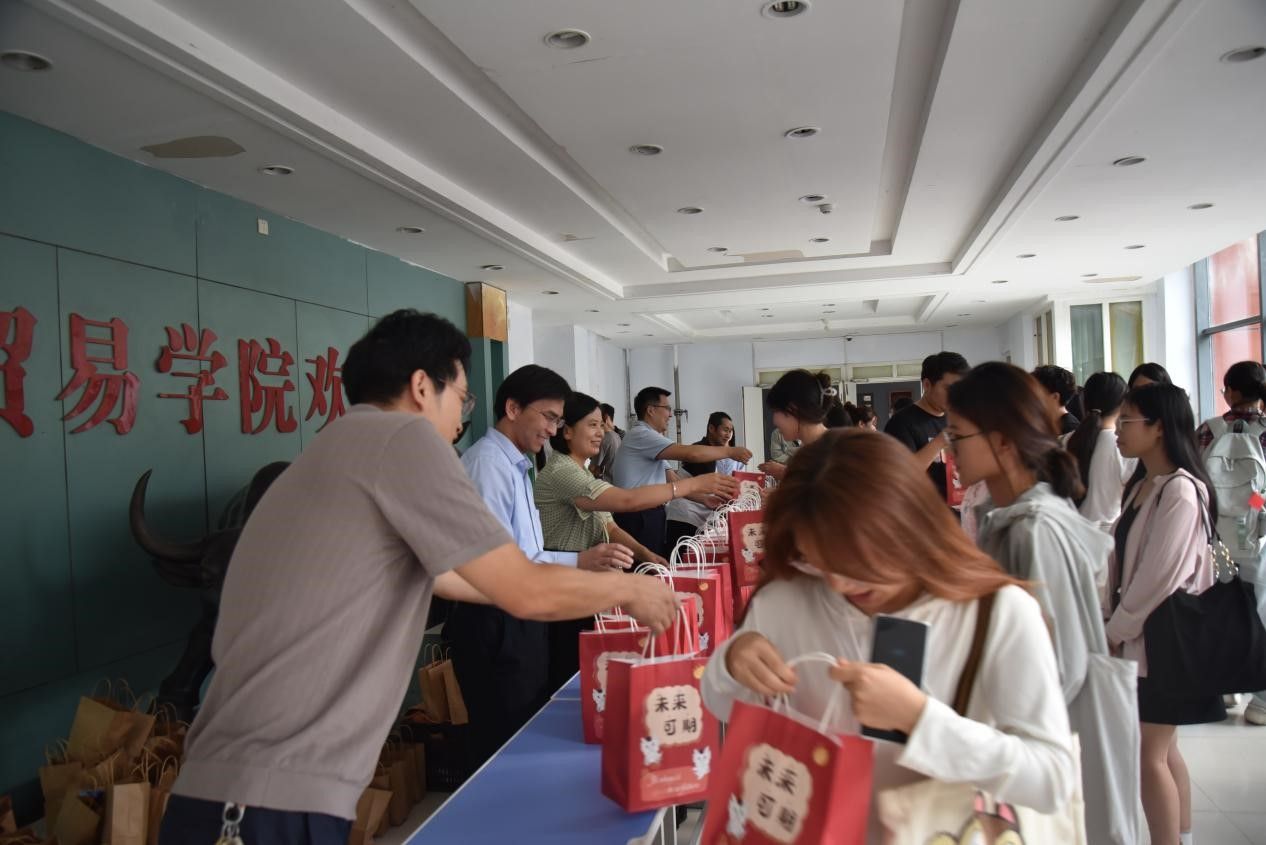 活动中,学院领导与学生们进行亲切地交谈,一方面叮嘱同学们感恩父母、勤奋学习,在佳节之际通过各种方式向家人表达思念与感恩之情;另一方面强调了个人假期出行安全的重要性,提醒同学们做好安全防范措施。随后,学院领导和老师们为在场每一位学生亲手送上学院精心准备的月饼水果礼包。慰问现场秩序井然,气氛温馨而热烈,学生们手提着满载祝福的礼包,脸上洋溢着幸福的笑容,纷纷对学院的关心表达了诚挚的感谢。