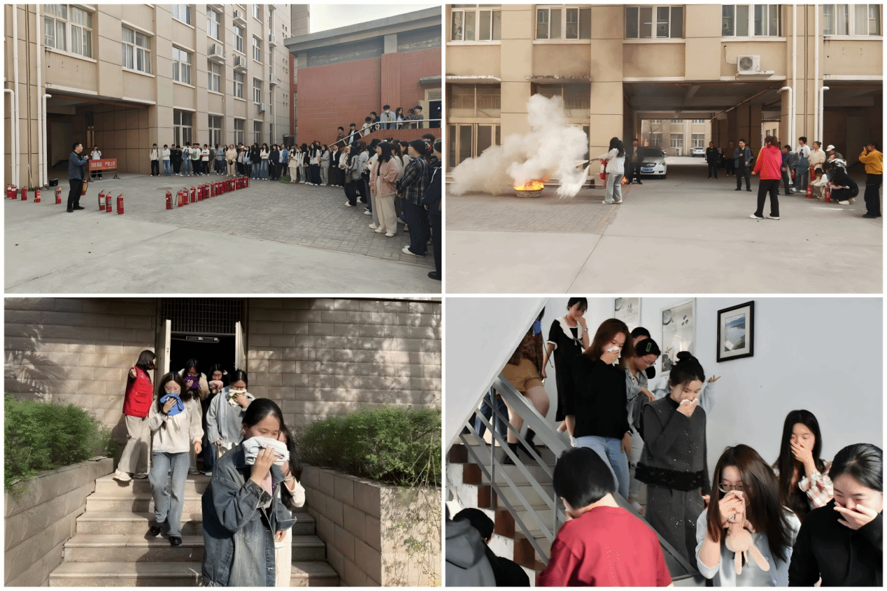 知识培训,提升应急处置能力。消防培训与疏散逃生演练是本次活动的重要环节。3月24日,学院联合保卫处、党委学生工作部、后勤服务中心召开应急疏散演练动员部署会,3月25日,学院邀请学校保卫处孙志华老师开展消防安全教育知识讲座,孙老师结合学生生活实际,系统讲解了消防基础知识与应急处置要点,通过分析近年高校实验室、宿舍区典型火灾案例,现场演示防烟雾面罩使用方法,湿毛巾捂口鼻、低姿撤离等疏散逃生方法,让学生更加深刻认识到预防火灾和正确疏散逃生的重要性。