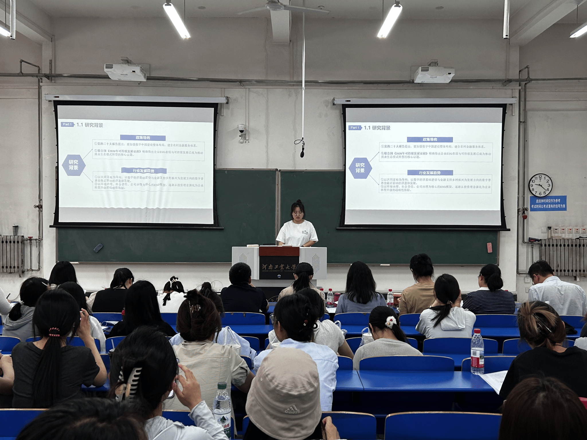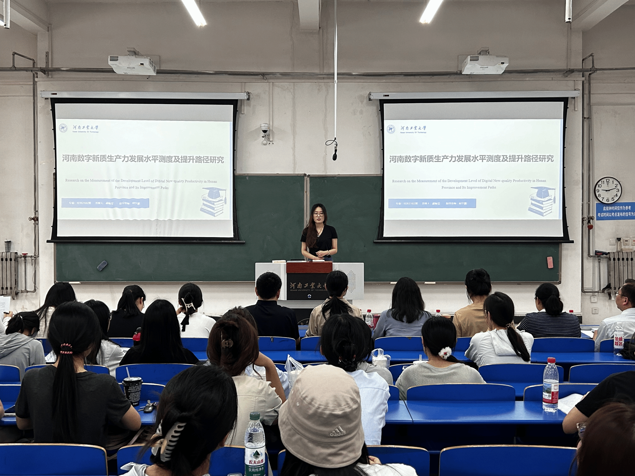 在答辩环节,来自经济学、金融学、国际经济与贸易、财政学专业的5位毕业生依次登台,围绕论文选题背景、研究方法、创新价值及现实意义进行汇报。答辩委员从学理逻辑、数据支撑、政策启示等方面提出修改建议并提问。同学们沉着应答,以扎实的专业功底和创新意识展现了经贸学子的杰出风采。