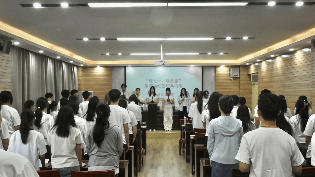 在博识楼3605会议室成功举办了“迎七一、颂党恩”第四届红色经典诵读活动。院党委副书记岳鹏珍、团委书记王秋瑾、学工办主任张福勇出席活动,活动由张瑞玲主持。