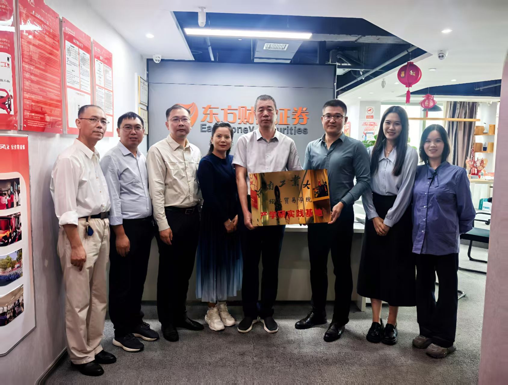 党委书记李刚、副书记岳鹏珍、副院长郭力、金融学系主任宋博、教师代表吕乐天与东方财富郑州桐柏路营业部总经理李海峰、高校业务区域总管李思婷等出席了签约仪式。