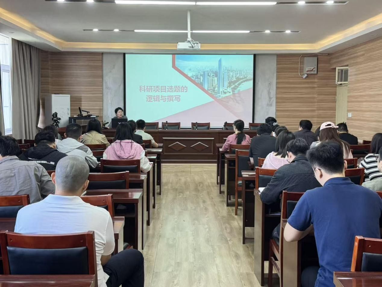 在博识楼3605会议室召开2026年度国家社科基金首场申报辅导会。本次会议特邀学校经济管理学部副主任孙中叶教授作《科研项目选题的逻辑与撰写》专题学术报告。会议由院长李文启主持,学院40余名申报2026年度国家社科基金项目的教师参会。