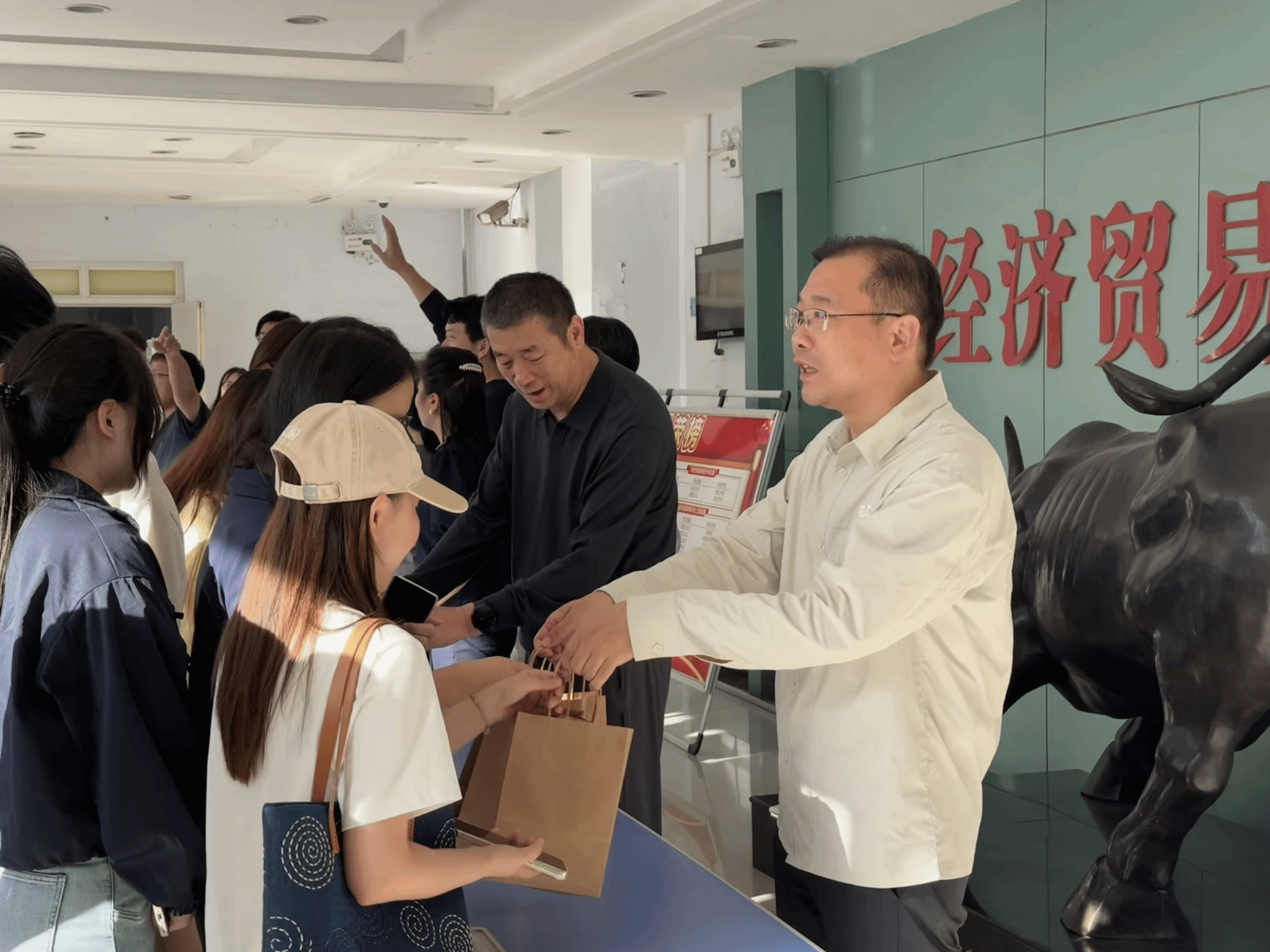 活动现场,学院领导与同学们亲切交流,不仅细致询问大家的学习进展与双节假期安排,更结合中秋节、国庆节点开展引导:中秋时可通过视频、电话向家人传祝福,国庆假期建议观看专题报道等,回望祖国发展、感受时代成就,将个人成长与国家发展相连。同时提醒假期出行、宿舍用电等安全事项,要求强化防范意识,确保假期平安有意义。随后,领导和老师们亲手为每一位学生递上暖心慰问品,现场秩序井然,欢声笑语不断,学子们接过礼包时的笑容里满是温暖与感动。