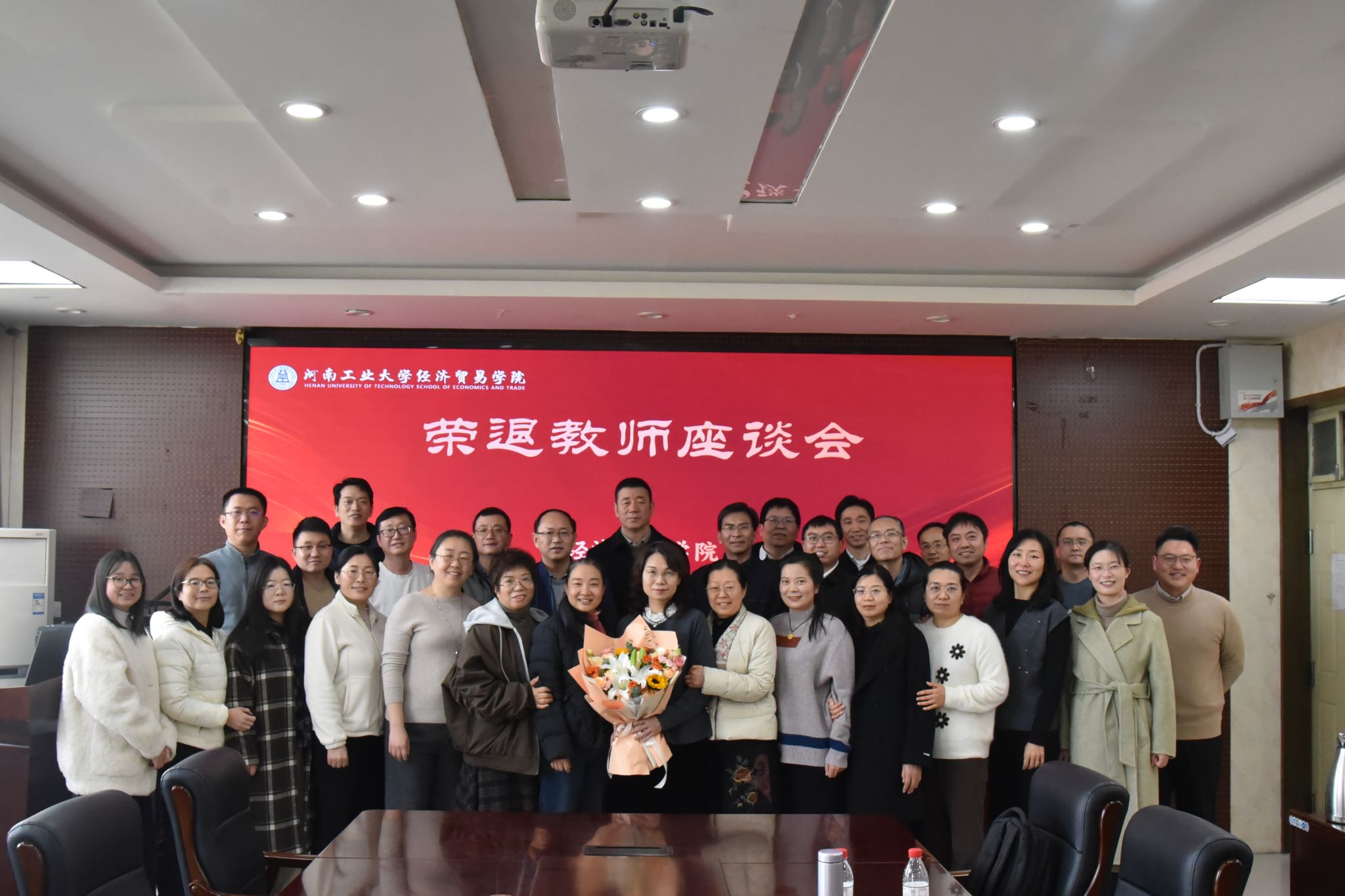 在博识楼3501会议室召开吴艳芳老师荣退座谈会。学院领导班子、中层干部及各系室教师代表参加会议,由院党委副书记、工会主席岳鹏珍主持。
