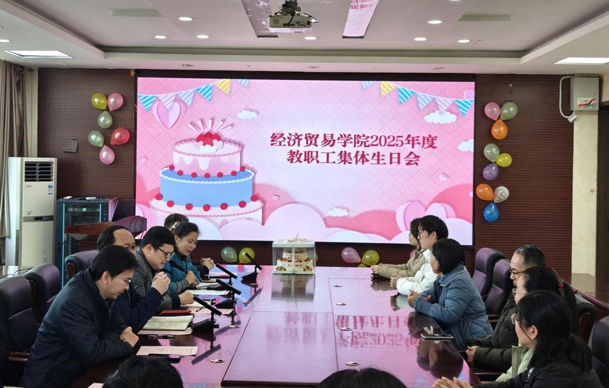 于博识楼3501会议室举行2025年度教职工集体生日会。学院领导班子成员、逢整十生日的教师以及教师代表参加了本次活动,生日会由学院党委副书记、工会主席岳鹏珍主持。