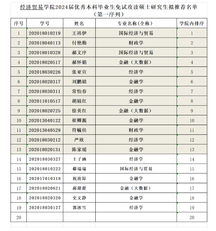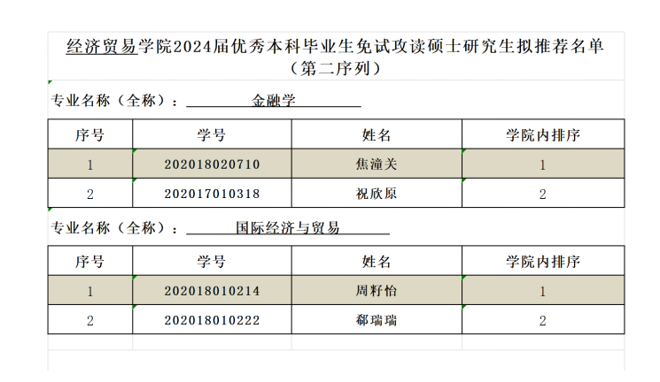 推荐优秀应届本科毕业生免试攻读硕士学位研究生工作实施细则》的要求,经广泛动员、个人申请、材料审核、学院推免遴选工作小组审定,在预推荐名单公示后,根据学校最终下达分配给学院的指标方案和指标数量,经学院推免遴选工作小组审定,按照分配名额的1.5倍进行公示,拟推荐名单(分两个序列),如表1和表2所示。