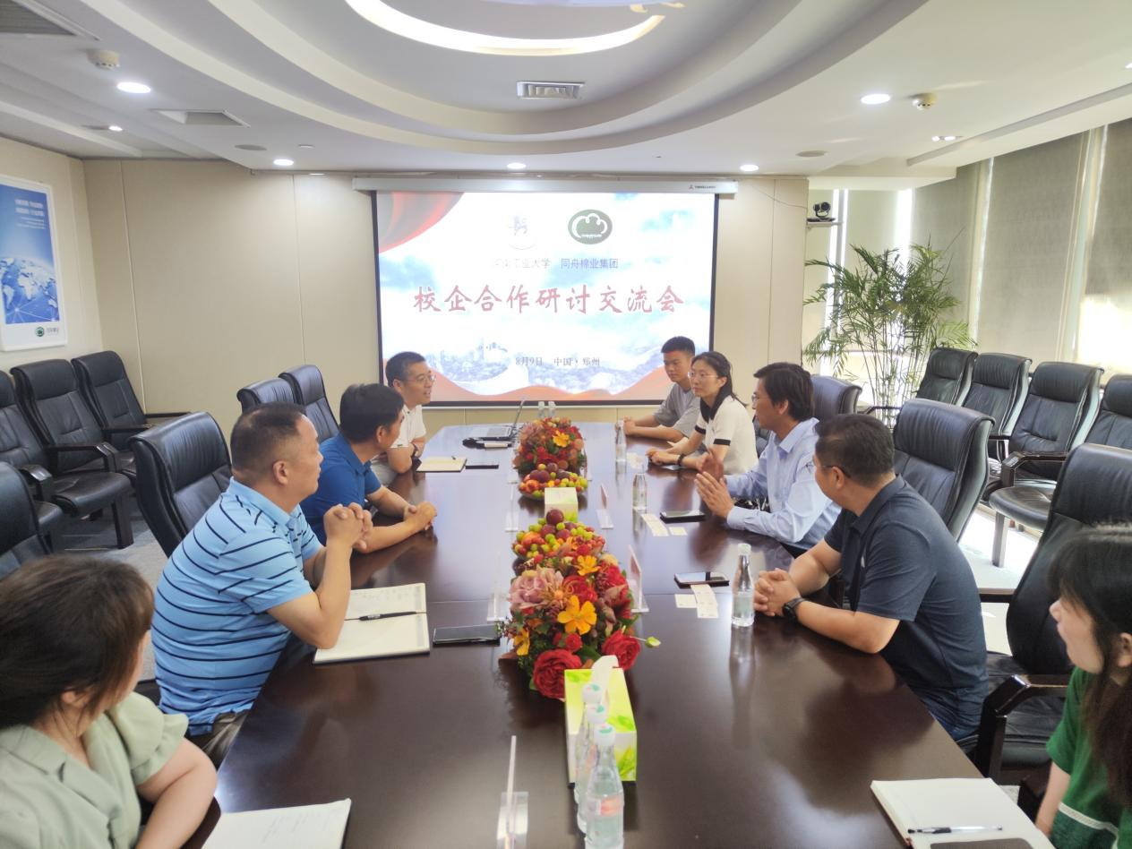 副院长朱坤林、国际贸易系主任樊慧玲和实验室主任吴成浩前往河南同舟棉业有限公司(简称“同舟棉业”)开展校企合作研讨活动。河南同舟棉业有限公司董事长魏刚民、副总裁李涛、总裁助理王豪杰及相关职能部门负责人参加了研讨交流会议。