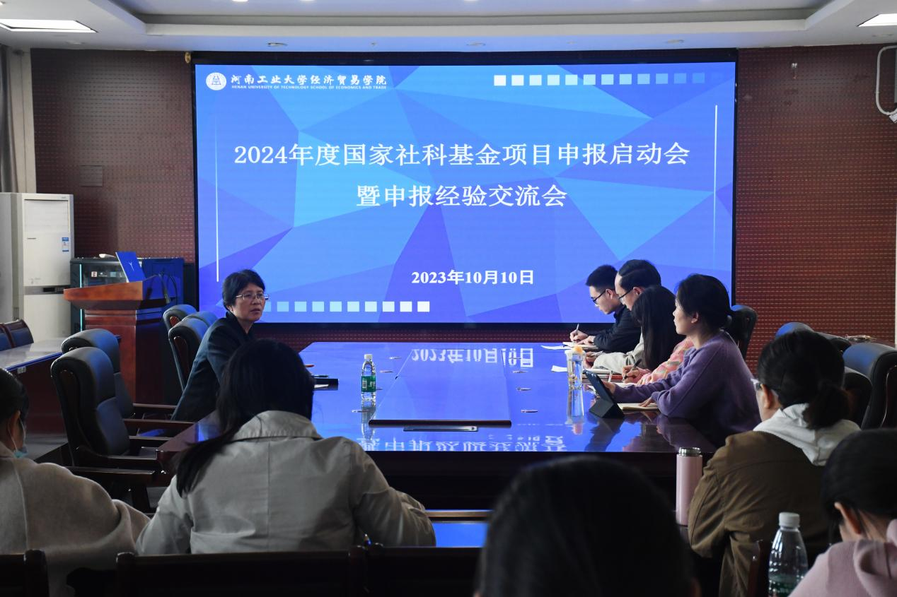 孙中叶结合全省主要高校经管类学院2023年国家社科基金申报及立项情况,总结了本年度学院国家社科基金申报情况,对2024年度国家社科基金申报工作进行动员和部署。