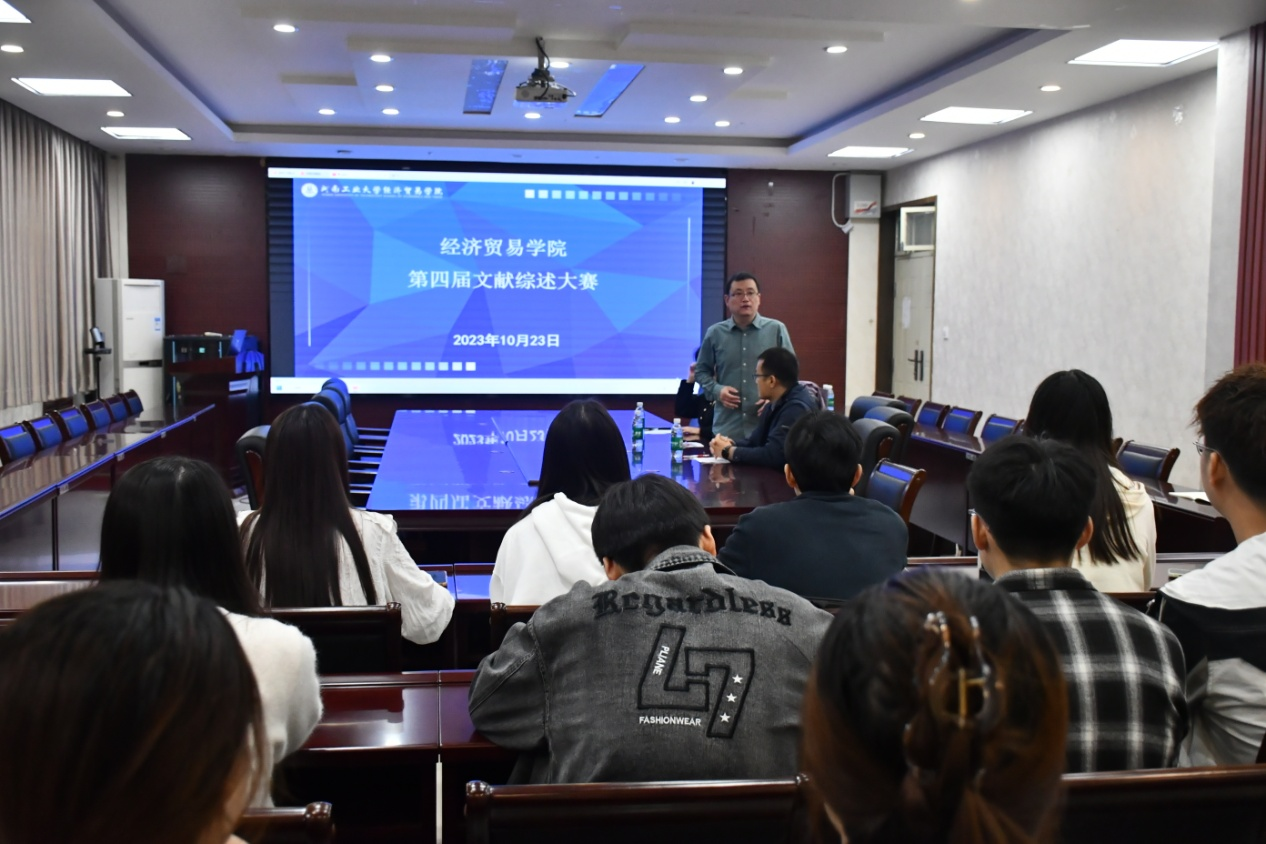 硕士研究生第四届文献综述大赛比赛在3501会议室顺利举行。本届比赛邀请到经济系党支部书记何宇鹏、青年教师张维洁、粮食经济数据中心主任郭鹏老师担任此次大赛评委,大赛由郭鹏老师主持,部分研究生参加。