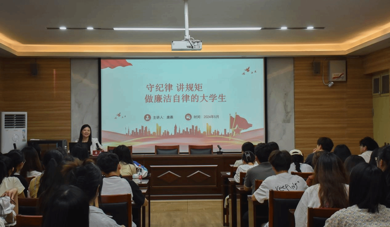 会上,唐燕以“守纪律讲规矩,做廉洁自律的大学生”为主题,首先强调了从严治党的重要性,她指出从严治党是坚守党的初心使命的本质要求,是巩固党的长期执政地位的必然选择,对实现中华民族伟大复兴具有重大意义。随后,从纪律行为角度出发,强调入党积极分子应筑牢思想基础,树立廉洁意识,扣好人生的第一颗扣子。最后,她对全体同学寄予希望,希望他们做到慎权、慎微、慎欲、慎独,继续发扬党的优良传统和作风,始终保持清正廉洁的政治本色,为推动学院的发展和社会的进步作出更大的贡献。