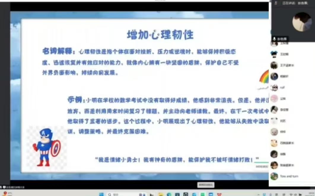 此次讲座以“我是小小情绪管理师,做最好的自己”为主题,旨在引导孩子们正确认识情绪、理解情绪管理的重要性,掌握有效的情绪管理小技巧并运用到社会实践中,以此来增加同学们的心理韧性。讲座伊始,团队成员通过生动有趣的案例,形象的图片以及各种情绪所对应的颜色,帮助同学们认识了喜怒哀乐等各种基本情绪,孩子们在轻松愉快的氛围中,认真听讲,积极思考。紧接着,团队成员又深入浅出地阐述了情绪管理对于个人成长和发展的重要意义。良好的情绪管理不仅能够帮助孩子们更好地应对学习和生活中的压力与挑战,还能促进良好人际关系的建立,提升自身的心理素质和综合能力。孩子们在聆听中频频点头,若有所思。