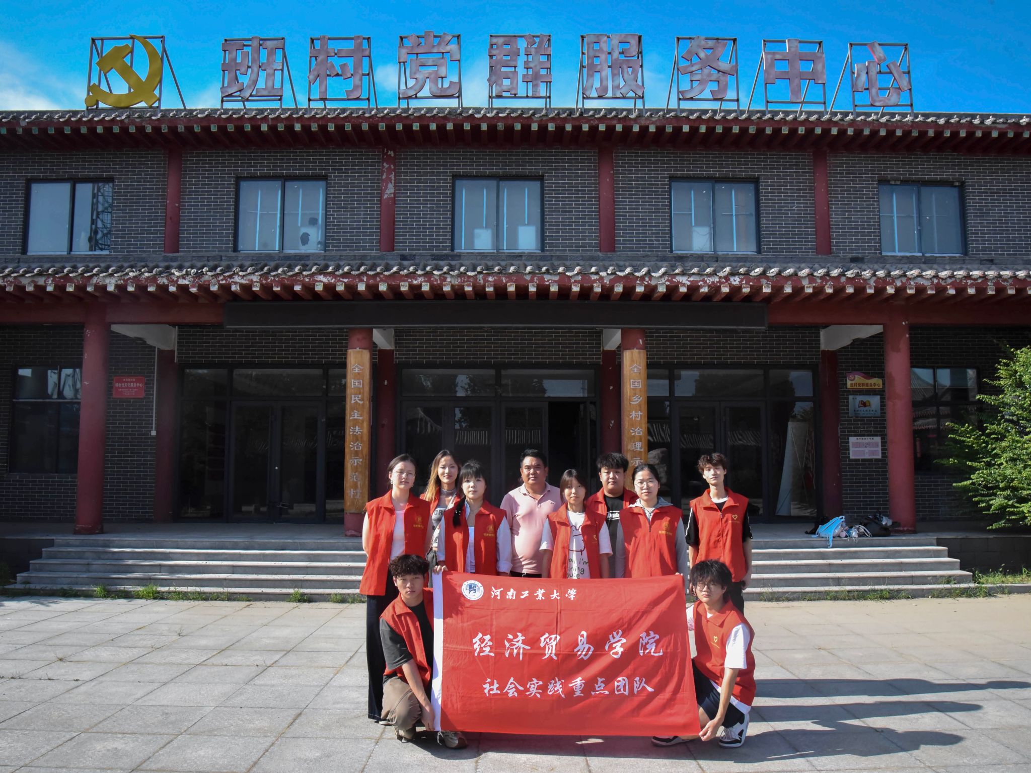 图为实践团队与班村村干部在村委会合影