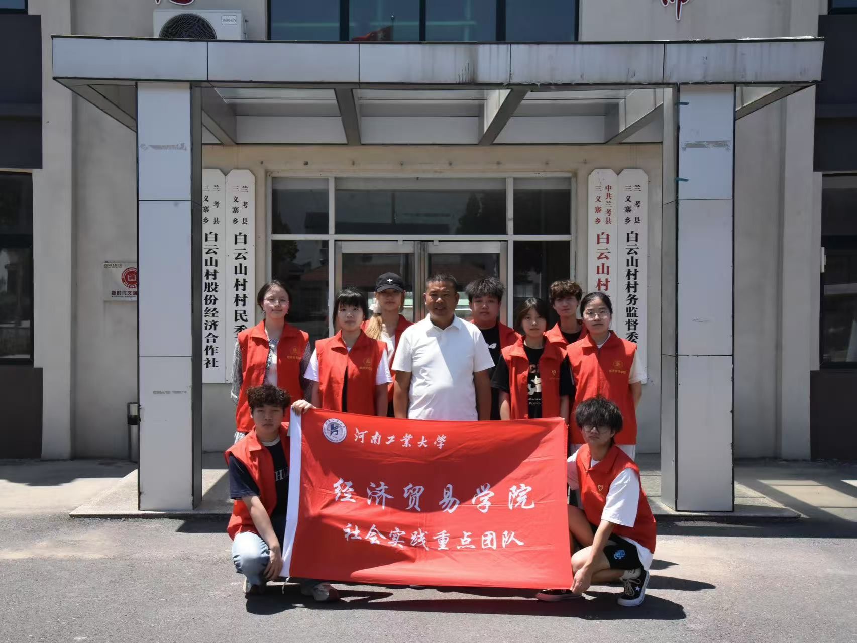图为实践团队与白云山村村支书在村委会合影