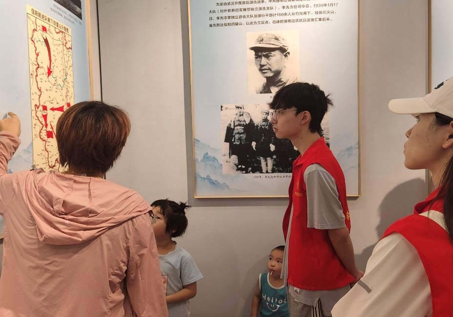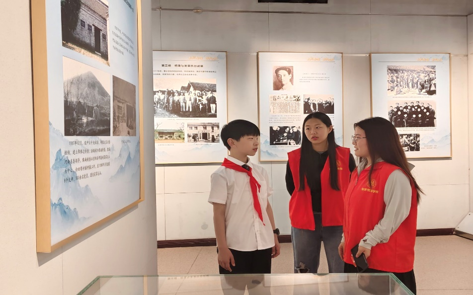 随后,实践团队成员和工作人员进行了交流,对鄂豫皖革命历史和大别山精神的内涵有了更深刻的认识。在展馆中,团队成员偶遇了一位母亲,她指尖划过鄂豫皖革命的作战地图,将藏在地图里的故事娓娓道来。团队成员悄悄站在后方,听她把历史的重量揉进温柔的语调,看孩子忽闪的眼睛里渐渐映出光芒——那是懵懂被点亮的瞬间,也是红色的种子悄悄扎根的模样。