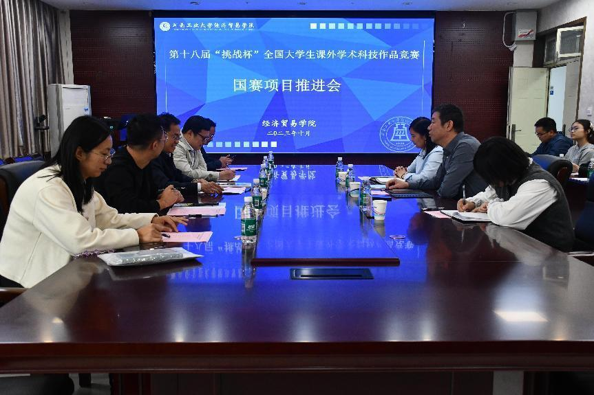 在3501会议室举办“挑战杯”国赛项目推进会。校党委副书记周相寅、校团委书记高泉、校团委副书记杨伟超和吴鹏、校团委社团部部长李凯歌莅临爱影视