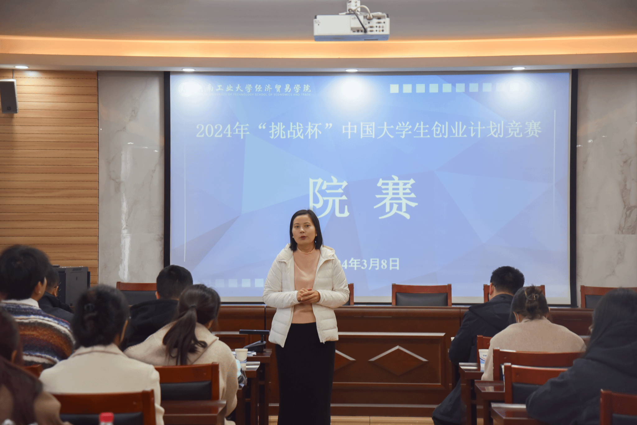 于3605会议室举行了“挑战杯”中国大学生创业计划竞赛院赛。院党委副书记岳鹏珍,“挑战杯”功勋导师李铜山、翟书斌,“挑战杯”优秀指导老师关浩杰、任新平及全体参赛队伍参加了此次会议。会议由院团委副书记王秋瑾主持。