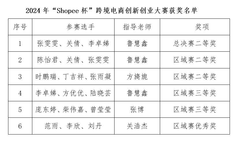本次大赛由跨境电商创新创业大赛组委会等主办,共有来自全国高校600多支队伍参赛,经系统自动统分、人工复核和专家评审等环节确定各参赛队总成绩。“Shopee杯”跨境电商创新创业大赛重点考察Shopee跨境电子商务平台运营 、大数据分析能力。本次比赛,注重对跨境电商实战的模拟,有利于学生学习并应用所学技能,提高学生专业知识在具体场景中交叉融合运用的熟练度,取得了“以赛促学、学以致用”的良好效果。