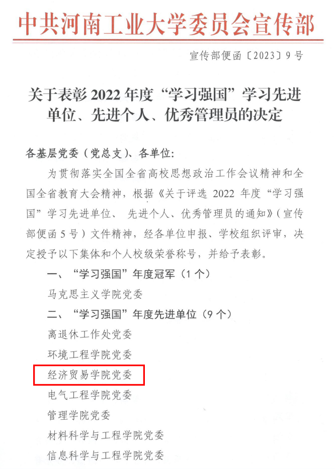 为贯彻落实全国全省高校思想政治工作会议精神和全国全省教育大会精神,树立榜样,表彰先进,进一步激发广大党员学习热情。近日,校宣传部对2022年度“学习强国”学习先进单位、先进个人和优秀管理员进行表彰。经学院推荐、学校组织评审,爱影视