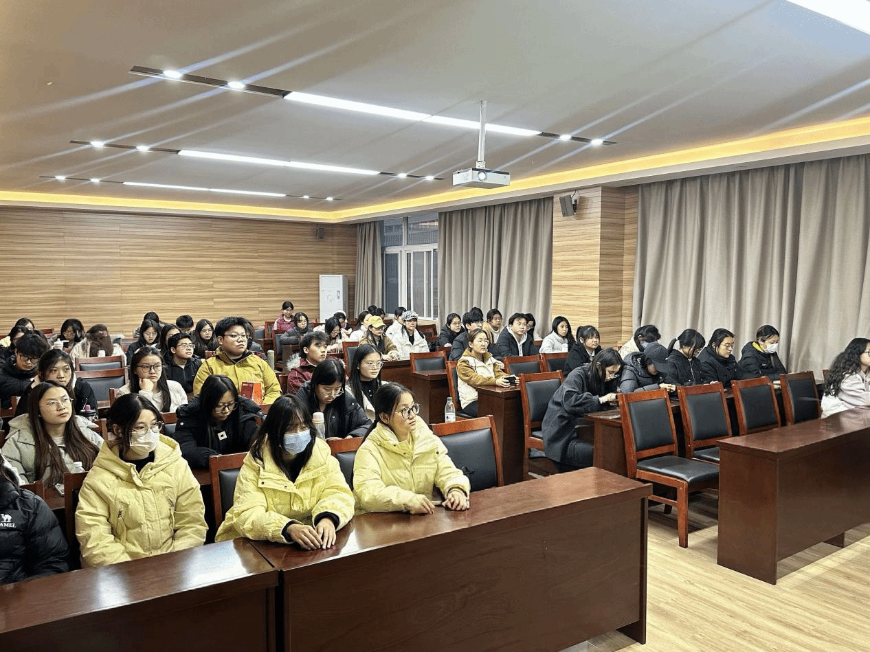 宣讲过程中,王秋瑾紧扣党史学习核心,以“党史中的青春力量与时代担当”为核心主线展开分享。她结合中国共产党百年奋斗历程,从新民主主义革命时期的青年英烈、社会主义建设时期的青年先锋,到改革开放以来的青年榜样,系统梳理了不同历史阶段青年群体在党的领导下勇担使命的奋斗轨迹;同时,聚焦党史中的经典事件与鲜活人物,通过“两弹一星”元勋中的青年科研工作者隐姓埋名报国、新时代青年党员扎根基层助力乡村振兴等典型案例,将抽象的“使命担当”转化为青年学子可感知、可践行的成长路径,让在场学生深刻认识到青年成长与党的发展、民族复兴的紧密联系。
