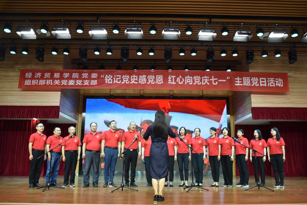 学生第四党支部《颂歌献给党,礼赞新时代》激昂的朗诵声中拉开帷幕。经济学教工党支部的小合唱《打靶归来》《社会主义好》铿锵有力地歌颂了党的光辉历程。组织部机关党委党支部的朗诵《祖国,一首唱不完的恋歌》颂出了对祖国深沉的爱意,赢得台下观众阵阵喝彩。在《党史在我们心中闪光》、《永远跟党走》等声情并茂的朗诵中,活动逐渐走向高潮,各自支部带来的节目表达了对党的无限热爱,营造了共庆百年华诞的浓厚氛围。最后,活动在校党委组织部副部长段慧子和爱影视