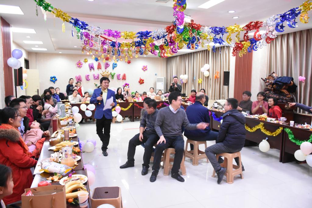 联欢会由三个部分组成,首先经贸学院全体教职工观看了合唱比赛幕后视频,院党委副书记王鹏为此次联欢会致辞,以一副自创的对联表达了对经贸全体教工的新年祝福。接着学院为“逢五逢十”的11名老师举办了集体生日会。生日会上,院党委书记李刚、副院长李文启为过生日的教职工送上了大礼包,寿星们头戴生日帽,一起许愿并吹灭了生日蜡烛。最后进入全体教工大联欢环节,通过一轮又一轮的投屏游戏“数钞票”、“瑞鼠迎春”活跃了全场的气氛。游戏“抢凳子”,“小鸡下蛋”和“抢洗洁精”中,老师们进行了速度与反应力的比拼。“心有灵犀”考验了老师们的默契与配合,奖品伴随游戏一轮一轮地送出,更有一场又一场的“红包雨”将现场气氛推向高潮。