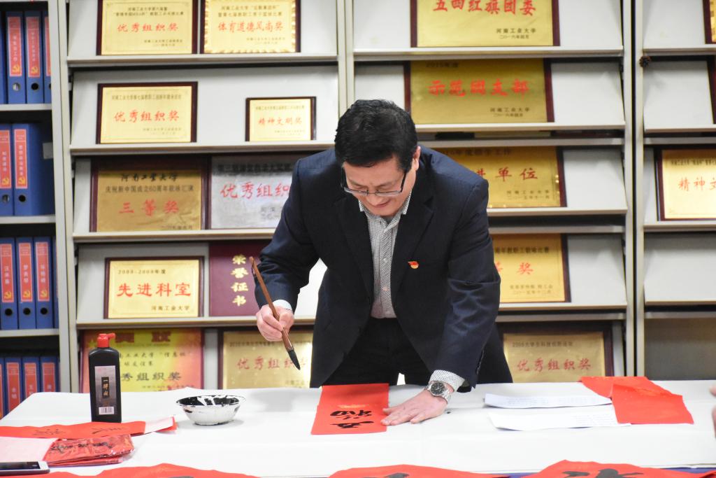 联欢会的分会场举行送春联和猜字谜、套圈的福利活动。徐朝辉为学院老师送上亲手书写的春联,表达了自己对经贸学院师生的新春祝福。老师们在猜字谜和套圈活动中,大显身手,一个个圆圈一个个字谜不仅让老师们获得了一件件小礼品,更获得了一份份美好的祝福。随着小礼品的不断送出,教职工联欢会也步入尾声。