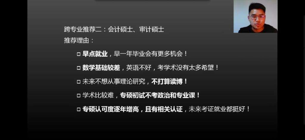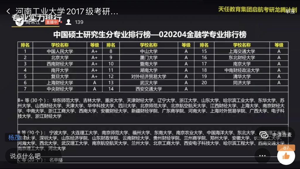 4月3日,郑州启航考研咨询部校长、经管类项目首席讲师周常江,针对经济类专业考生择校择专业深度解析。首先,周老师针对经济类专业考生择校择专业问题进行了深度解析,他依次向同学们解析了经管类考生如何选专业、经管类专硕和学硕有何区别、院校选择有哪些必须参考的因素、院校数据(报录比、复试分数线、平均分、拟录取名单等等)如何查询分析、如何做考研目标规划、当前阶段应该如何高效备战考研等许多备受同学们关注的问题。最后,同学们进行实时提问,周老师均做了耐心的回答。本次讲座持续一个半小时,周老师贴近现实,举例丰富,整场互动热烈,最终在满屏的感谢与赞赏中圆满结束。