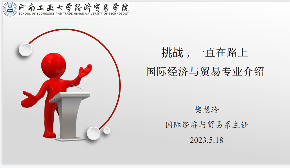 国际经济与贸易专业宣讲老师樊慧玲以“挑战,一直在路上——国际经济与贸易专业介绍”为主题,首先结合我国国际贸易发展实践,让考生和家长更加清晰看到国际经济与贸易专业将来发展前景,随后从历史沿革、专业优势、师资力量、办学优势、专业特色、人才培养和专业建设成果等六个方面讲解了专业优势和特色,让考生和家长更进一步感受到专业的建设内涵,最后分析了专业学生的毕业去向,展现了国际经济与贸易专业未来的发展前景。