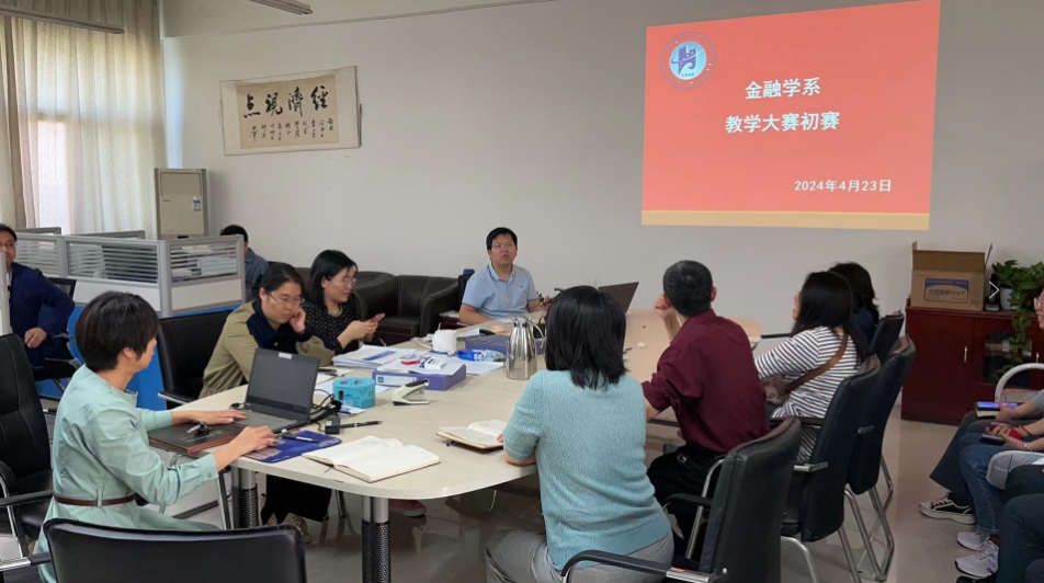 第十三届教学大奖赛实施方案》总体部署要求,4月23日下午,金融学系在3416开展了教学大奖赛系室预赛教研活动,全系老师参加了本次会议。会议由金融学系主任奚宾主持。