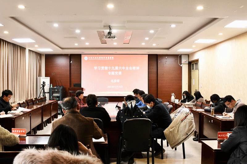 毛彦琴以“牢记初心使命,坚决维护两个确立”为题,介绍了十九届六中全会的召开情况,并强调十九届六中全会最重要成果是审议通过了《中共中央关于党的百年奋斗重大成就和历史经验的决议》。她带领大家回顾了党的历史上的三次全会通过的三个重要决议,指出学习宣传贯彻好党的十九届六中全会精神是我们当前和今后一个时期首要的政治任务,一定要结合党史学习教育把全会精神学习到位、宣传到位、落实到位。毛彦琴通过一组数字,分别从“2个文件”“3个需要”“3次飞跃”“4个伟大成就”“5大历史意义”“10大历史经验”“13方面的重要成就”“4个必须”“1个号召”九个方面,带领大家进一步学习了十九届六中全会精神,深刻领会习近平总书记的重要讲话和《中共中央关于党的百年奋斗重大成就和历史经验的决议》的核心要义和精神实质。最后,毛彦琴希望两个学院的广大师生员工要切实用十九届六中全会精神统一思想、统一意志、统一行动,奋发有为,担当实干,推动学校各项工作再上新的台阶。