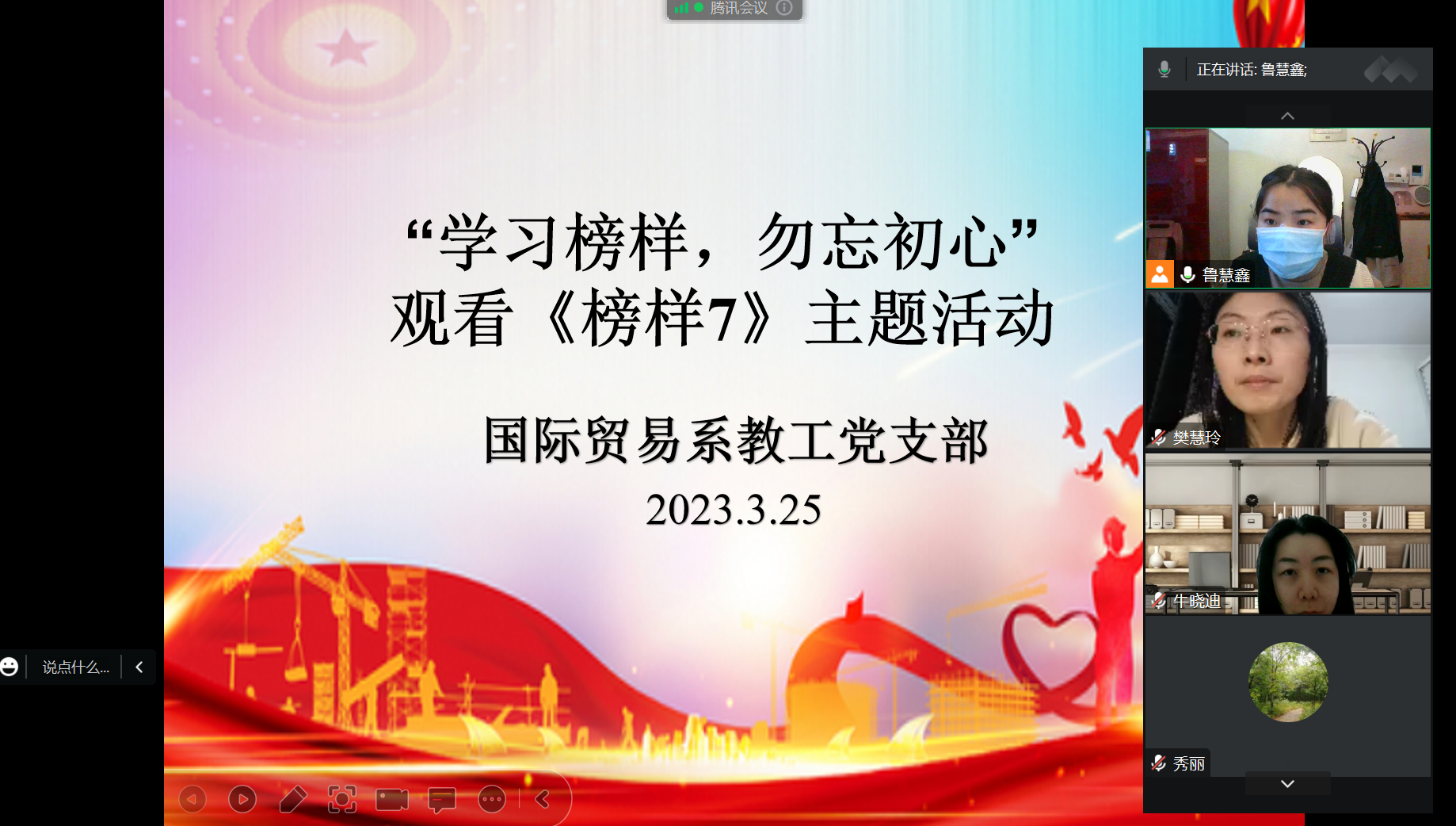 榜样就是旗帜,榜样就是力量。党员们观看后进行学习分享并撰写了心得体会。金融系教工党支部书记刘变叶深有感触“要用昂扬的精神状态,扎实的工作作风,发挥自己的一份光一份热,在急难险重面前勇挑重担,攻坚克难,在平凡的工作岗位上作出更大的贡献。”国际贸易系党支部书记鲁慧鑫表示“身为一名光荣的教育工作者,要将自己的热情注入到高等教育工作之中,努力成为这个时代的新榜样。”学生第五党支部党员王子怡观看节目后谈到“令我印象最深的就是武大靖在零下20多度的天气仍然坚持凌晨三四点去滑冰,他的这种为梦想坚持的精神深深地打动了我。奋斗是青春的底色,行动是最好的磨砺,作为新时代的青年我们要学习榜样的精神,把最美好的青春献给祖国和人民。”