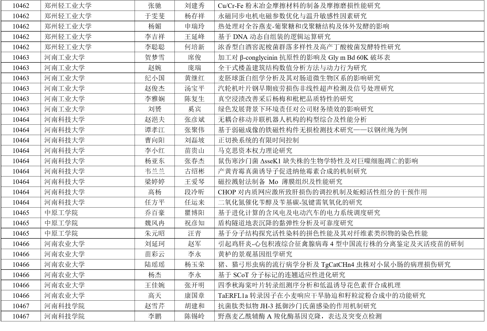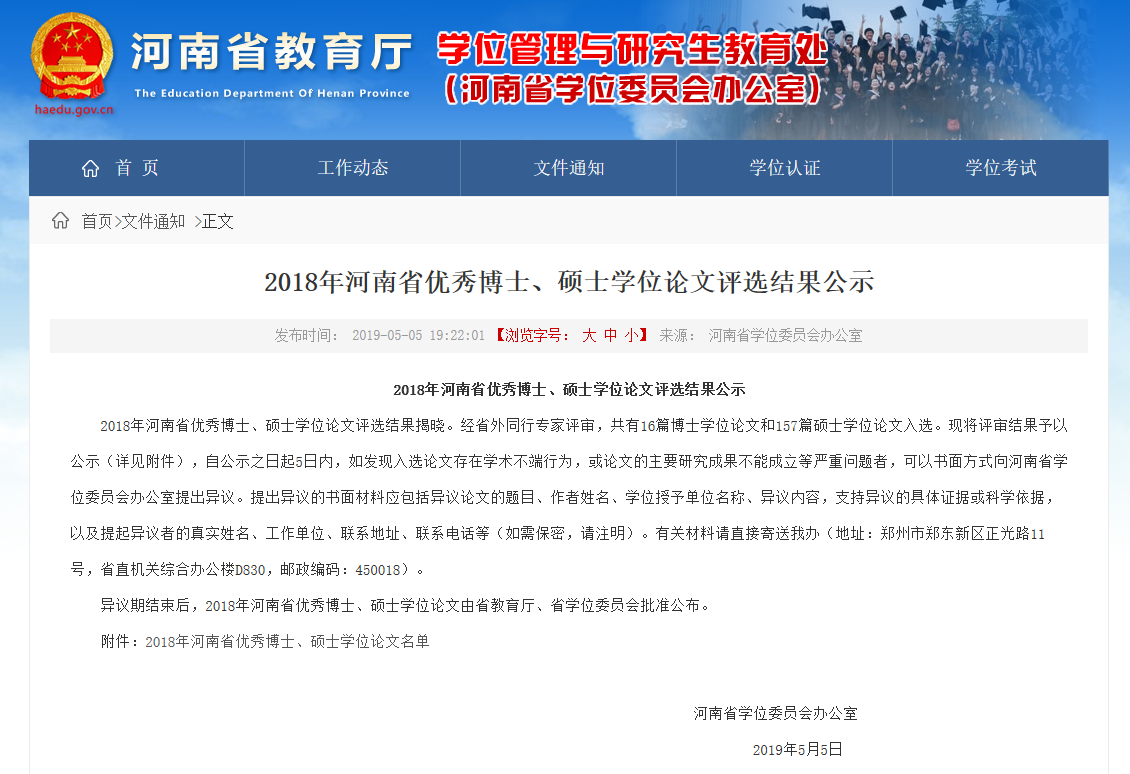2018年河南省优秀博士、硕士学位论文评选结果公示