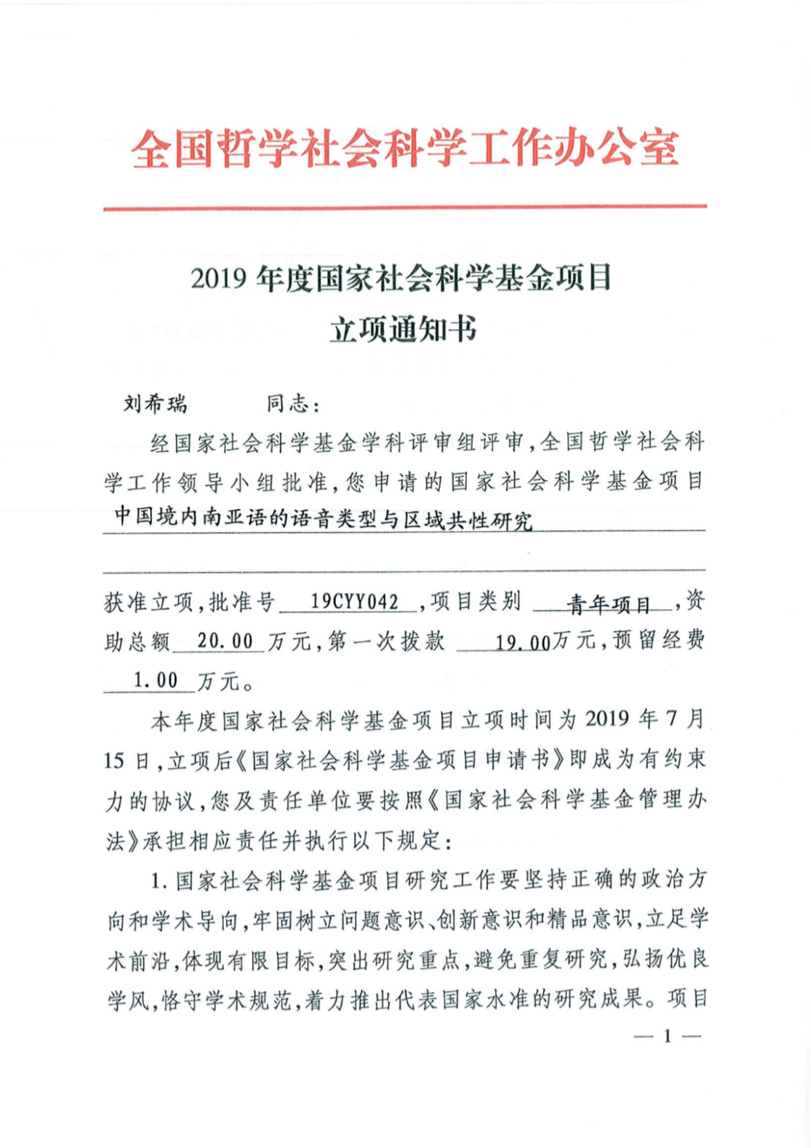 国家社科和自科基金项目——中国境内南亚语的语音类型与区域共性研究