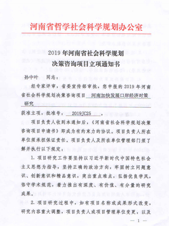 省级人文社科项目——河南加快发展口岸经济对策