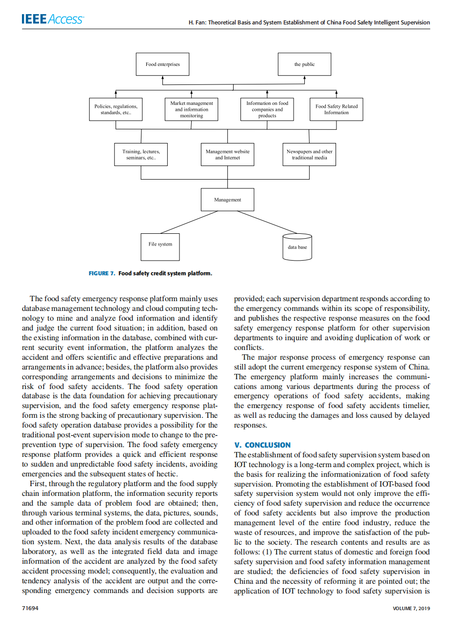 高水平论文8——Theoretical Basis and System Establishment of China Food Safety Intelligent Supervision in the Perspective ofinternet of things
