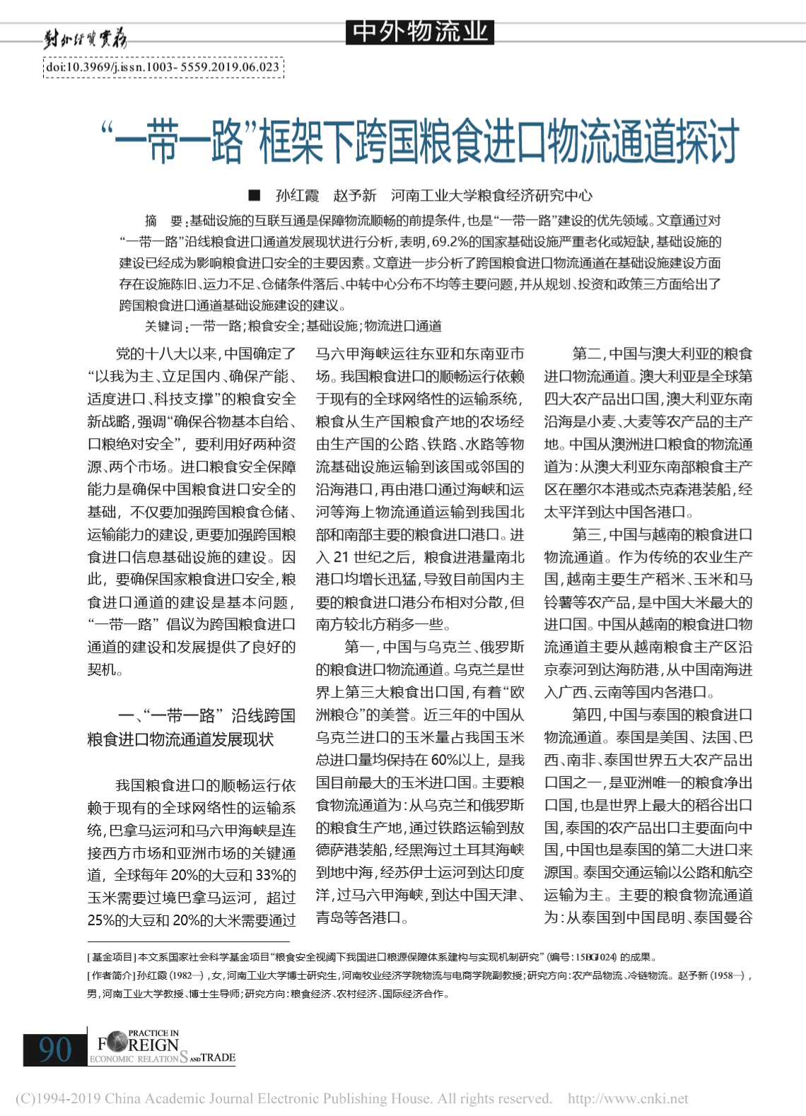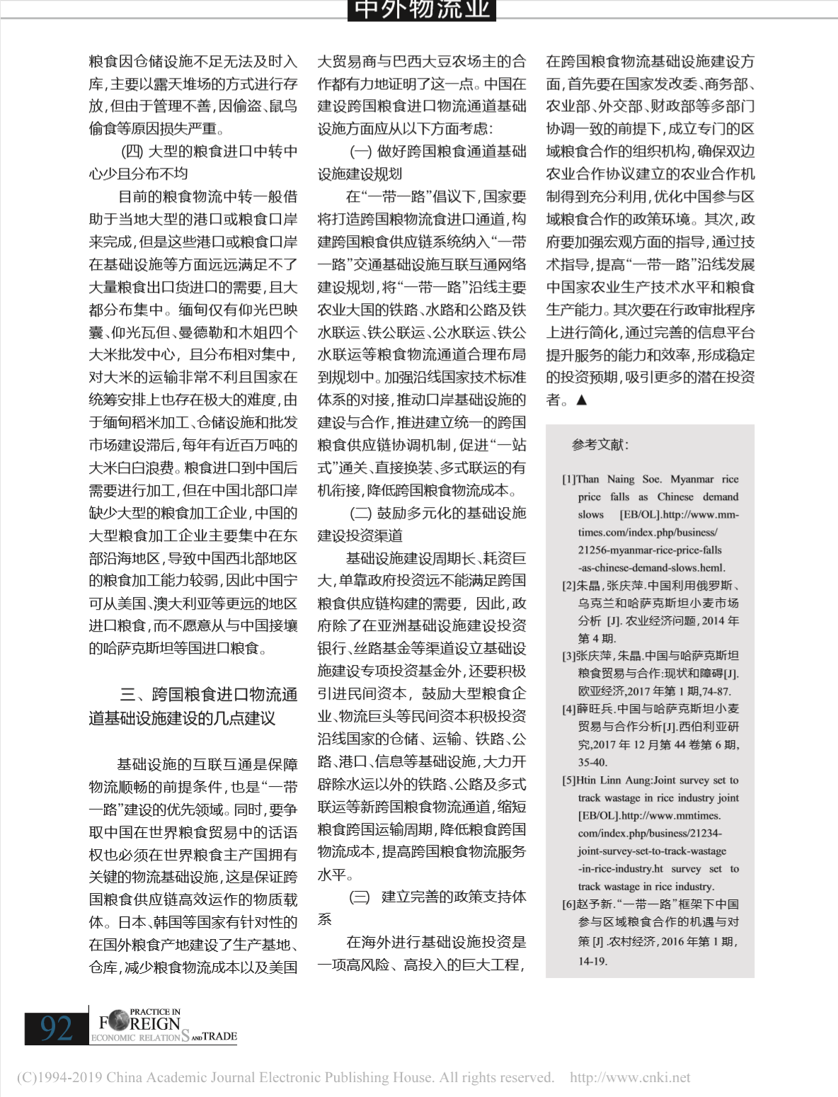 论文——“一带一路”框架下跨国粮食进口物流通道探讨
